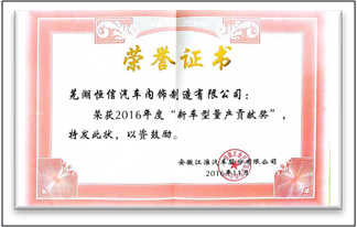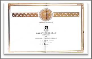 公司自主研发的汽车仪表板、门护板等系列汽车内饰件产品,多次获得省级,国家级技术创新奖。其中产品“B14门户板”产品获国家“三高”项目称号;真空吸塑成型仪表板项目获得国家科技部中小企业创新基金支持。